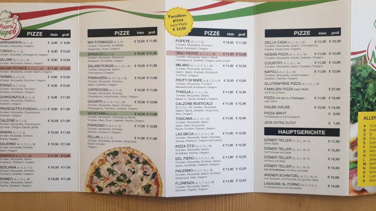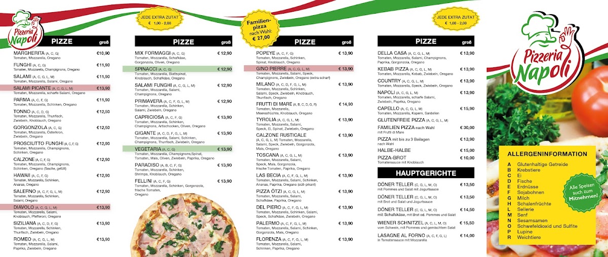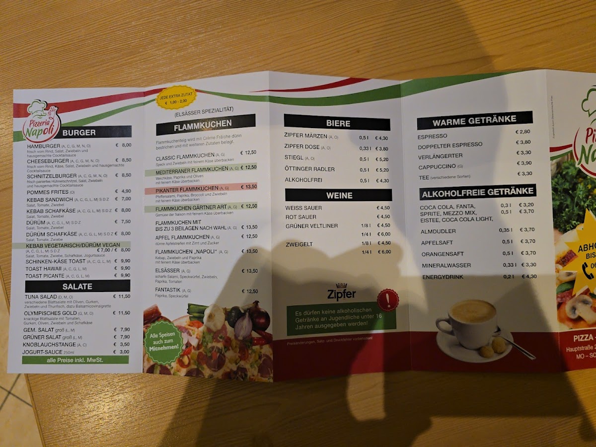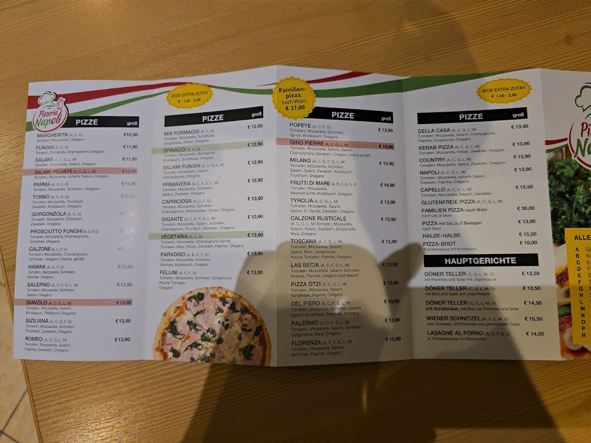 Pizzeria Napoli-Ötz offers a diverse and satisfying menu that caters to a variety of tastes. Their pizza selection stands out with classics like the Capriciosa, a flavorful option topped with ham, mushrooms, and olives, and the Kebab Pizza, which adds a twist with spiced kebab meat. For those looking for something a bit more unique, the Calzone Classico provides a hearty, folded pizza filled with cheese and savory ingredients. If you're in the mood for something more Mediterranean, the Pita is a great choice, offering a deliciously warm, stuffed bread. The Pide is another specialty that features a traditional Turkish flatbread, perfect for those who enjoy a lighter, crispier crust. Complementing these dishes are the Mit Pommes Und, which pairs perfectly with any pizza or kebab dish, and the delicious Knoblauchstange, a garlic bread that is an absolute must-try. With a menu that balances familiar comfort food with exciting new options, Pizzeria Napoli-Ötz is sure to satisfy any pizza lover or those looking to try something different.